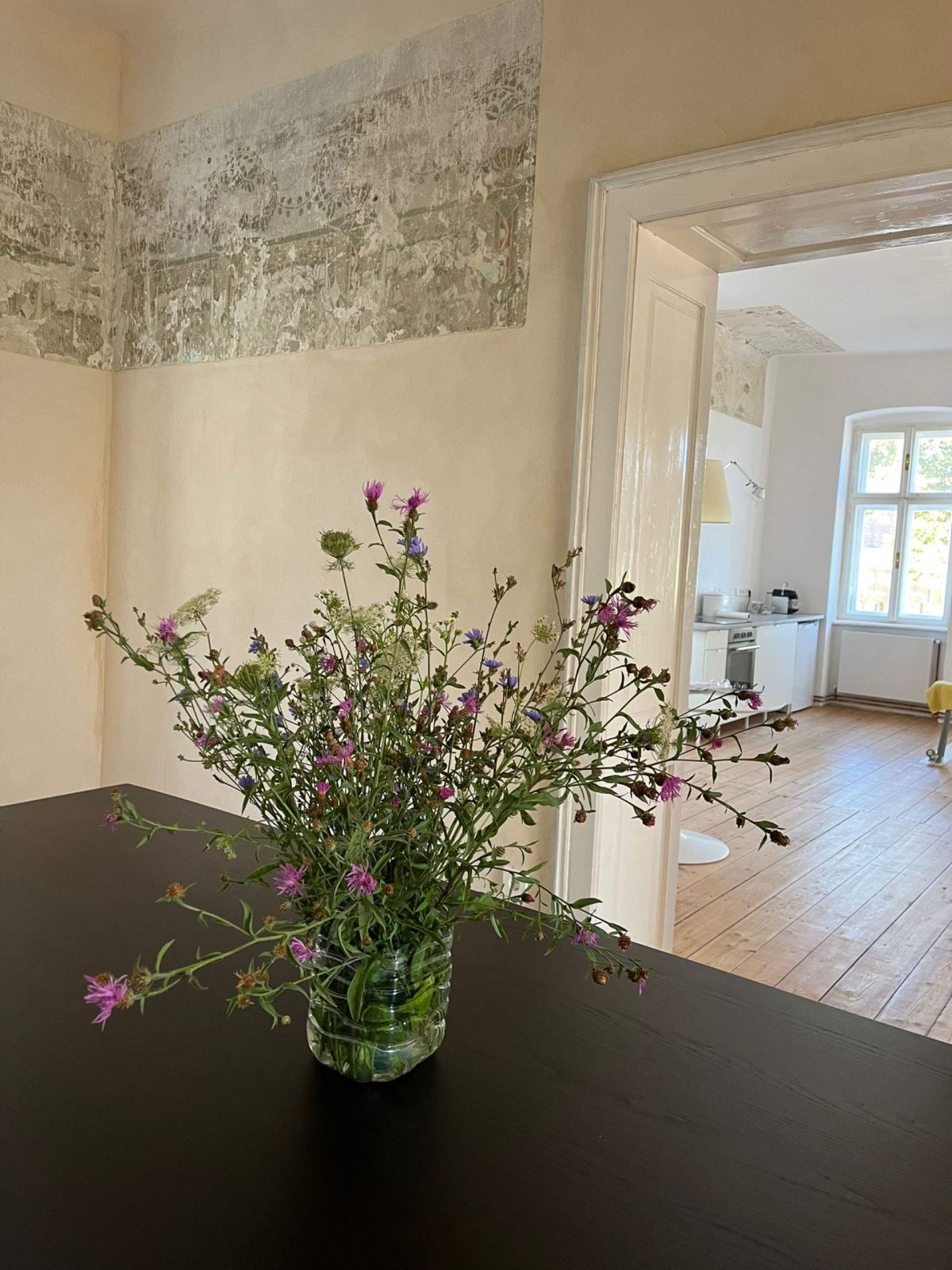 Das Apartment im Pfarrhaus bietet auf 94 m² eine außergewöhnliche Wohnatmosphäre. Die sorgfältige Restaurierung alter Malereien an den Wänden lässt die Geschichte des Gebäudes lebendig werden und fügt sich harmonisch in das moderne Wohnkonzept ein. Großzügige Räume, viel Tageslicht und eine hochwertige Ausstattung sorgen für ein Wohngefühl der besonderen Art.