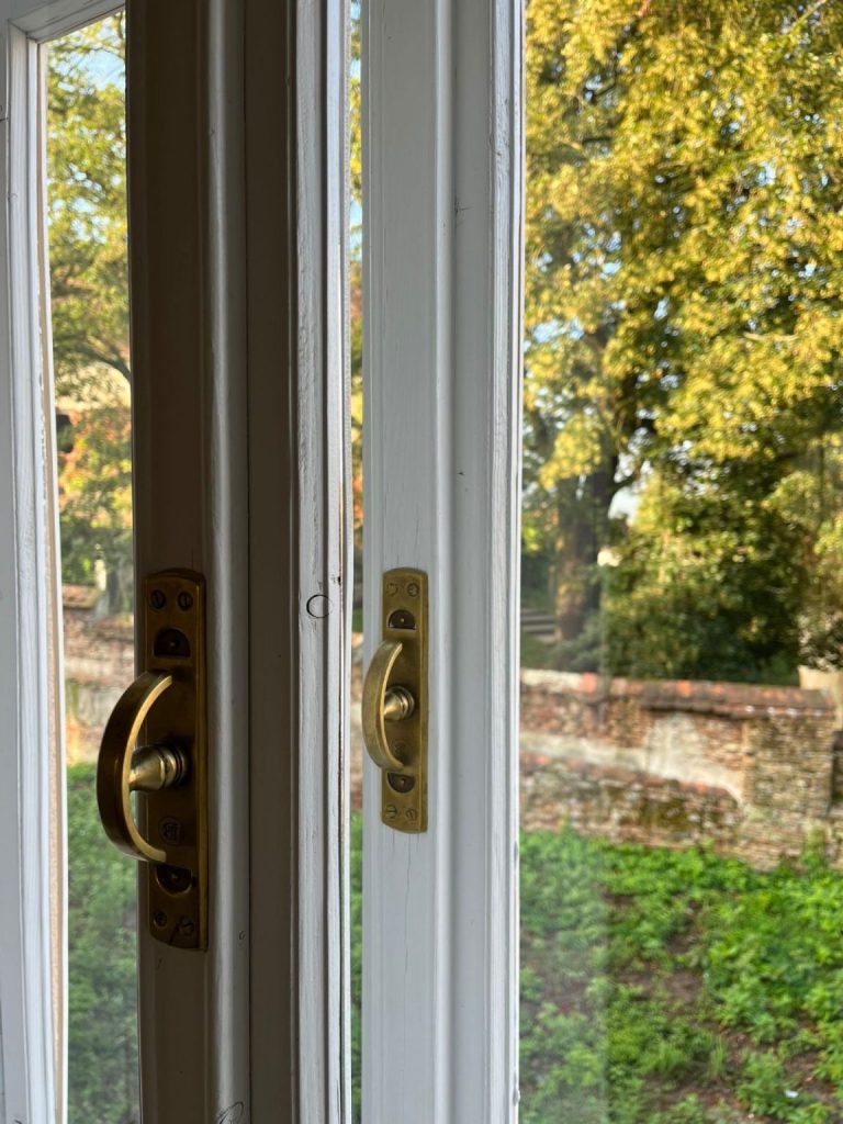 Durch die Verwendung hochwertiger Materialien und die Restaurierung originaler Bauelemente bleibt der historische Charakter des Pfarrhauses erhalten. Restaurierte Kassettenfenster und alte Messingbeschläge verleihen dem Apartment eine einzigartige Atmosphäre, während die moderne Einrichtung höchsten Komfort garantiert.